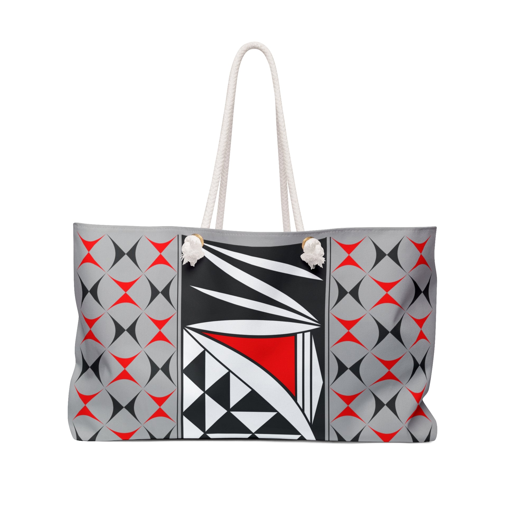 Our oversized Weekender Tote is perfect for your weekend at the beach or in town. The wide-mouthed, durable bag holds a generous amount of personal items and is easily held by its thick rope handles.